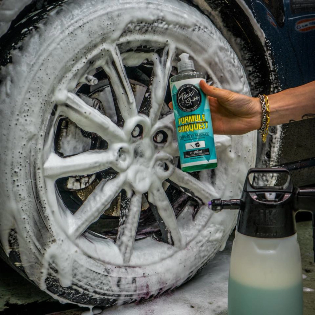 🧪FORMULE CONQUEST el cual es un limpiador multiuso recomendado específicamente para motores y partes exteriores del vehículo.